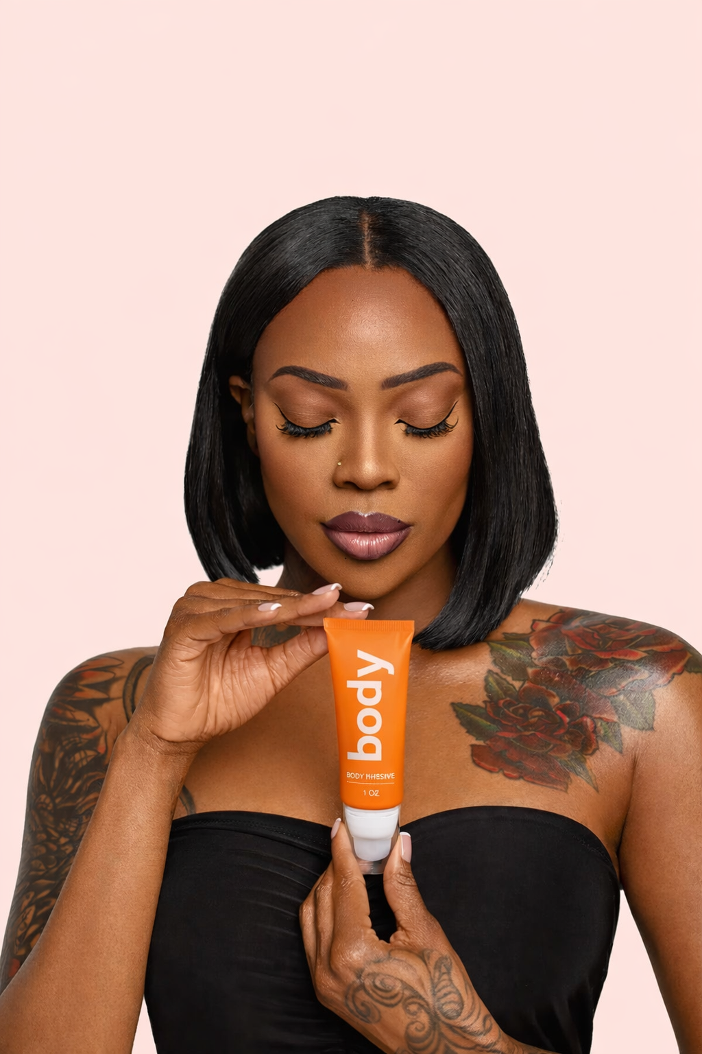Meet your new fashion bestie! Body Stikky — The #1 Liquid Fashion Tape that keeps your outfits in place no tugging, no adjusting, just flawless looks. From plunging necklines to off-shoulder styles, we’ve got you covered (literally).